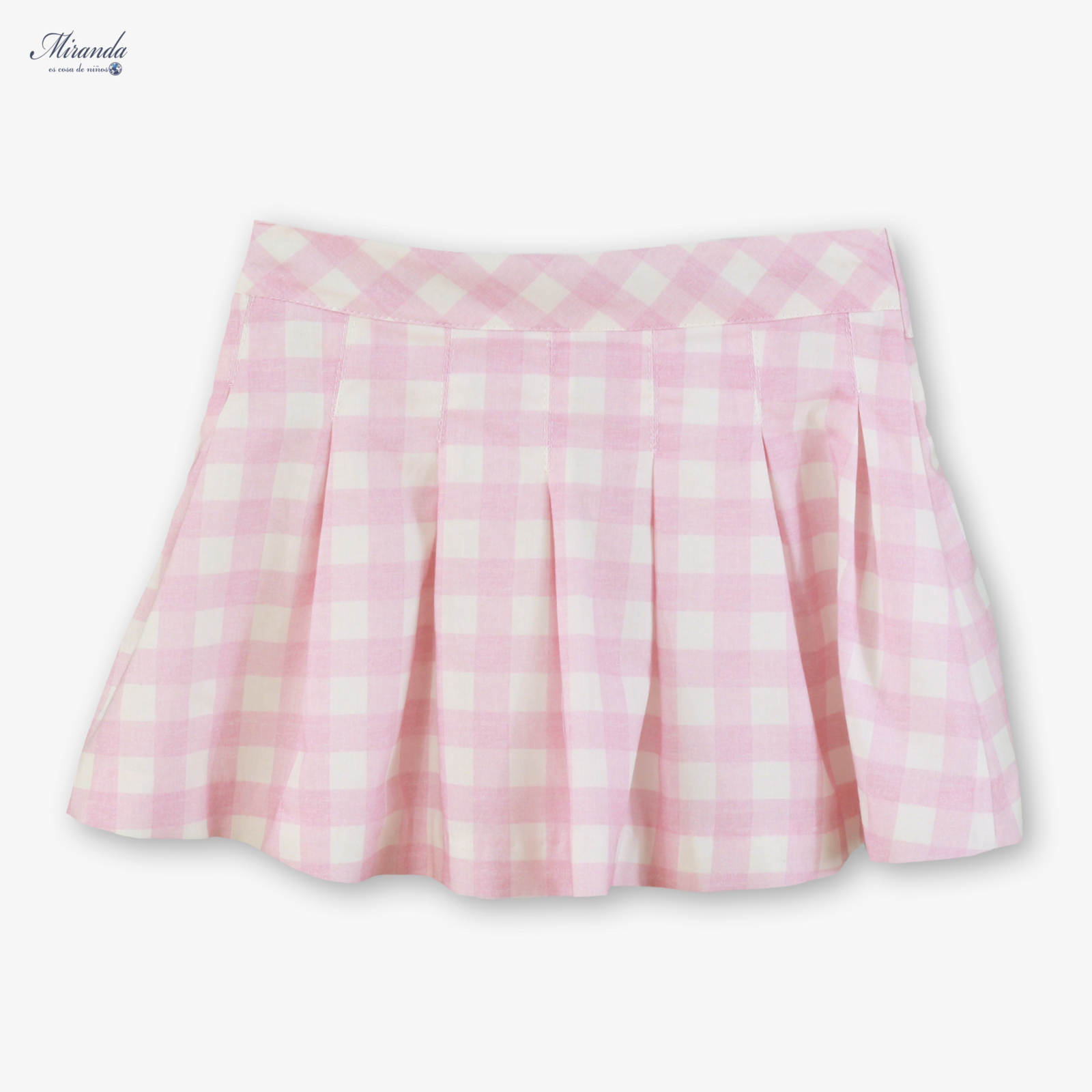 Fusta pentru fetite, cu imprimeu in carouri roz si alb, realizata din material usor si confortabil. Are croiala evazata cu pliuri si talie decorata cu nasturi, oferind un look jucaus si elegant. Potrivita pentru tinute casual sau ocazii speciale.