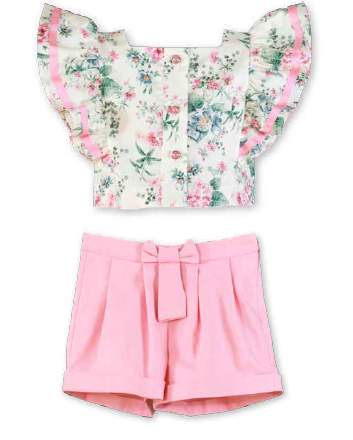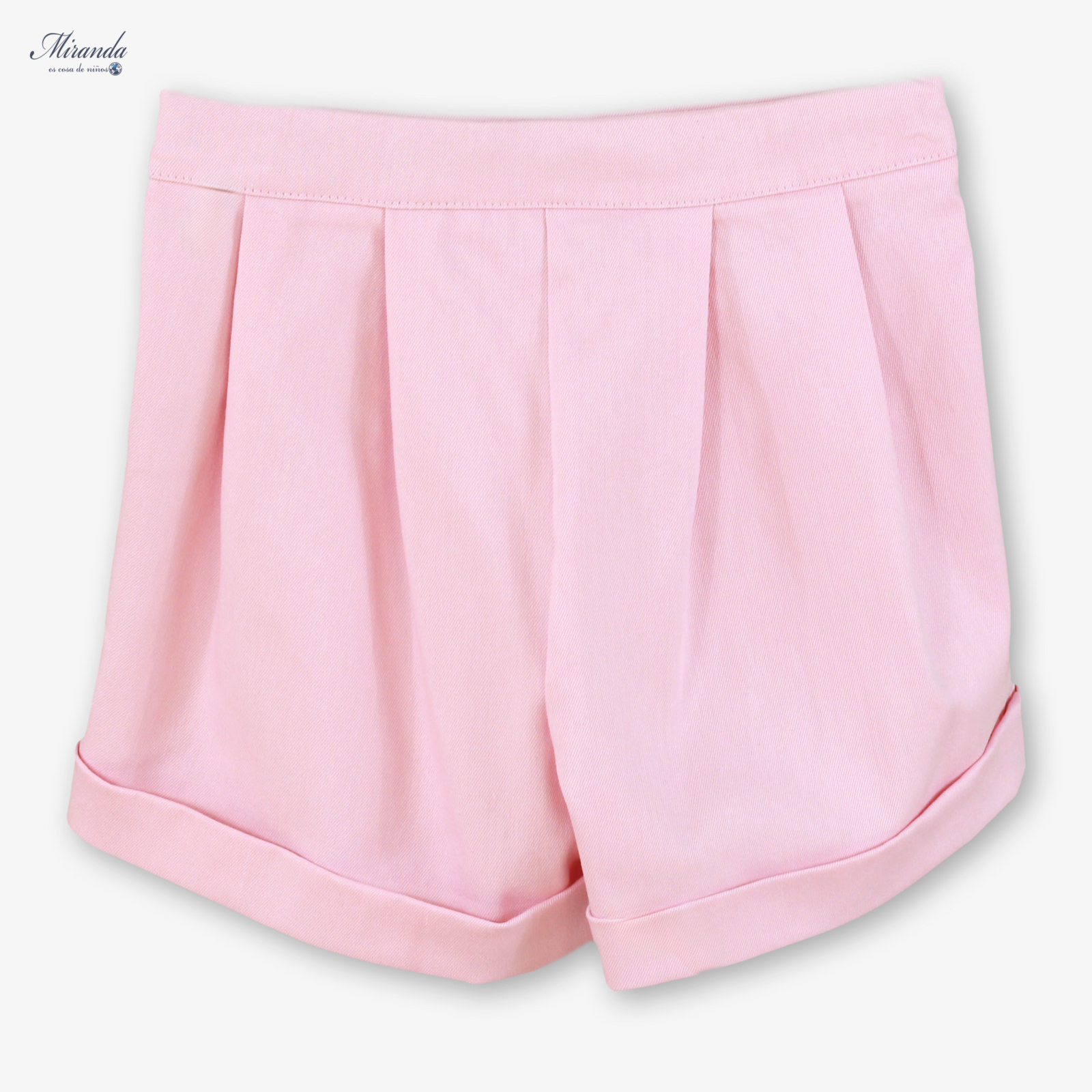 Aceste pantaloni scurti roz pentru copii de la brandul Miranda sunt alegerea ideala pentru o tinuta eleganta si confortabila. Designul include un detaliu feminin tip funda in talie, pense discrete pentru un plus de volum si margini indoite la baza.