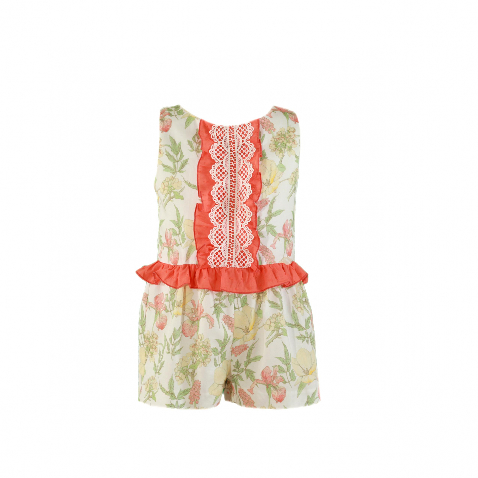 Miranda Salopeta fete Portocalie cu flori,dantela si volanase Miranda 4-10 ani
